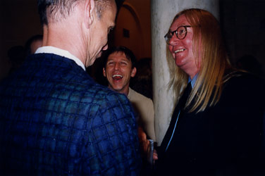 courtesy of DJ Miss Guy kept the party going till after midnight. Seen in the crowd were Paper Magazine columnist and film buff Dennis Dermody, designer Todd Oldham, cast members Liam Hughes and Wes Johnson, and Dreamland Correspondents Alana Miller and Jim Hollenbaugh. Even Judge Elsbeth Bothe was there, who confessed that she got John in her courtroom on obscenity charges way back when they were filming Mondo Trasho, and she let him go! BRAVO JUDGE BOTHE! |